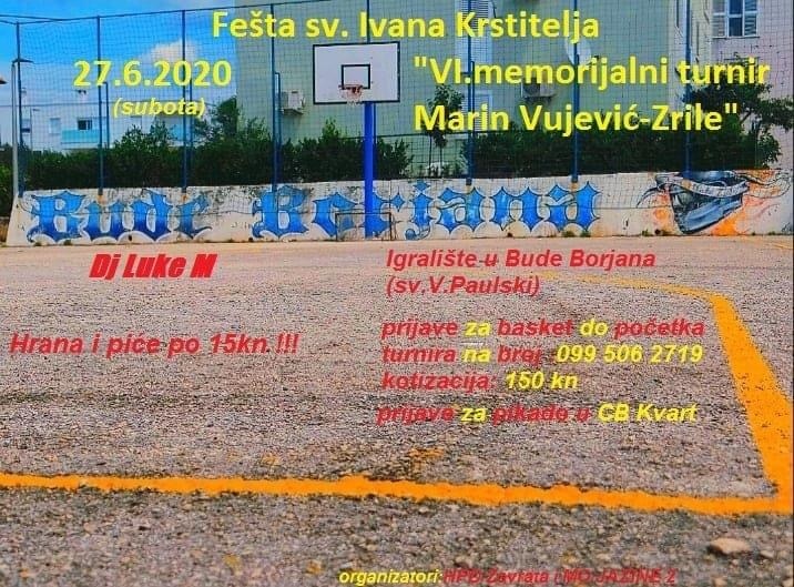 Dragi naši prijatelji dobrodošli na prvu after korona feštu i turnir u Zadru. Pridružite nam se na pomaknutoj tradicionalnoj fešti sv.Ivana Krstitelja i memorijalnom turniru “Marin Vujević-Zrile”uz vatrene mečeve u basketu i pikadu s početkom u 18h!!!