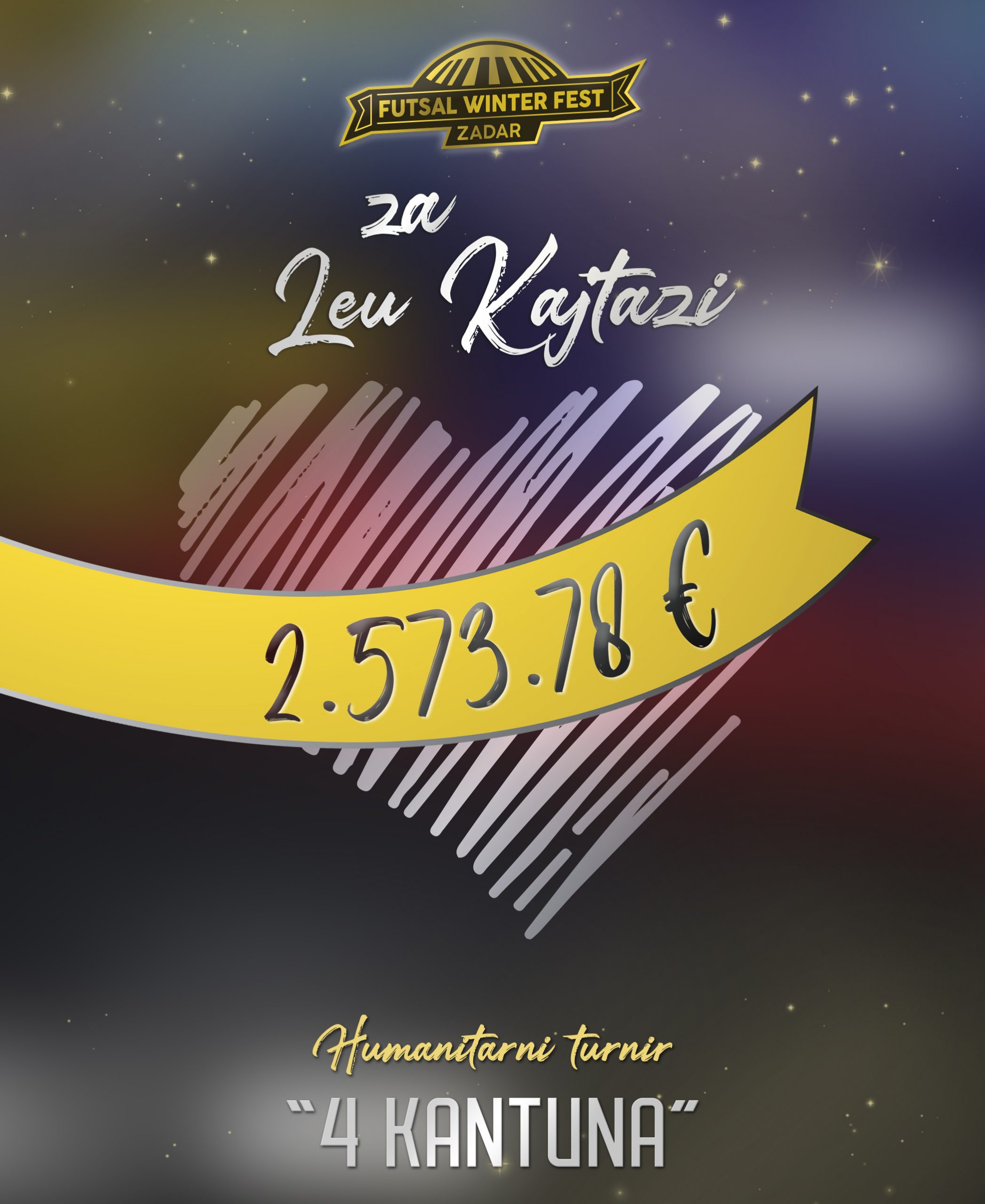 Na humanitarnom turniru Četiri kantuna prikupljeno je dvije tisuće i 573, 78 eura i zato na ovaj način iskreno zahvaljujemo svima koji su sudjelovali u akciji i kupnjom ulaznice ili donacijom pomogli zahtjevnom liječenju djevojčice Lee Kajtazi.