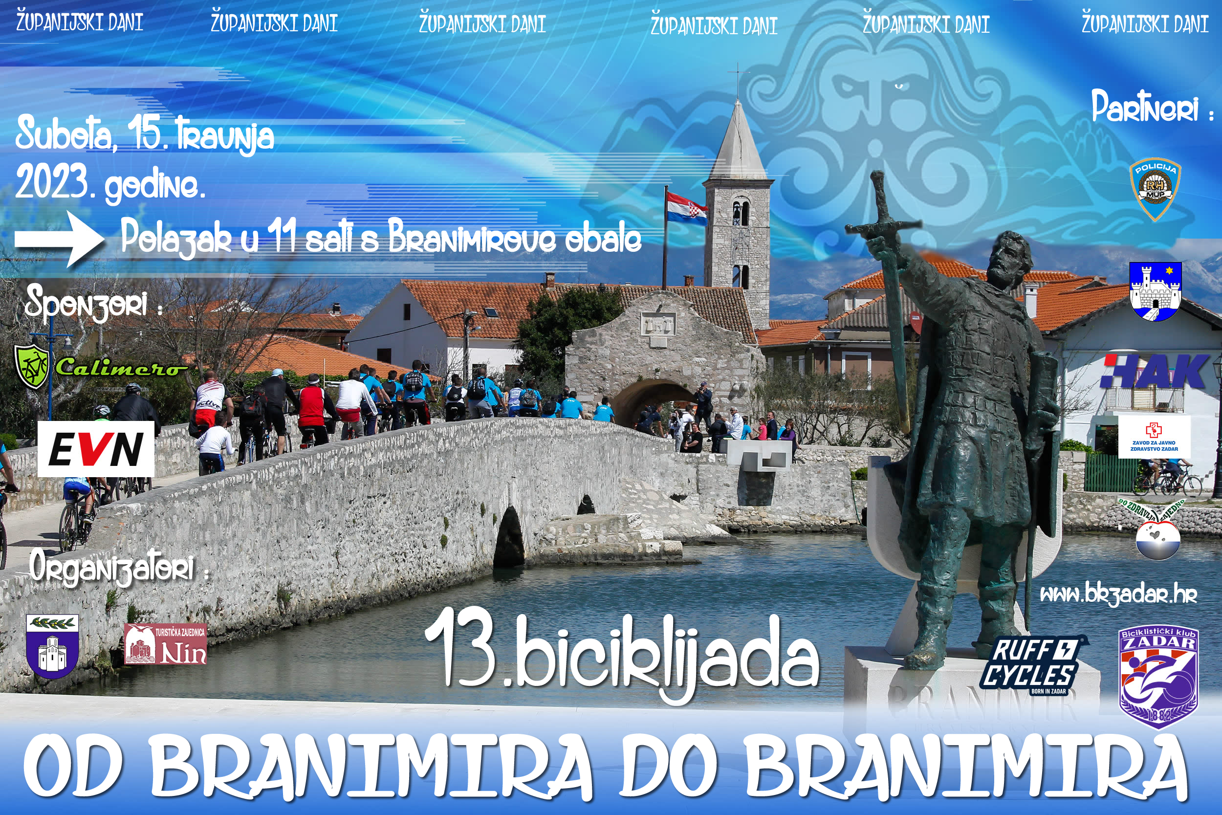 Prvog dana idućeg tjedna, točnije u ponedjeljak, 27. ožujka 2023., počinju prijave za 13. biciklijadu „Od Branimira do Branimira“ (Zadar-Nin-Zadar), koja će se održati 15. travnja 2023. s početkom u 11 sati.