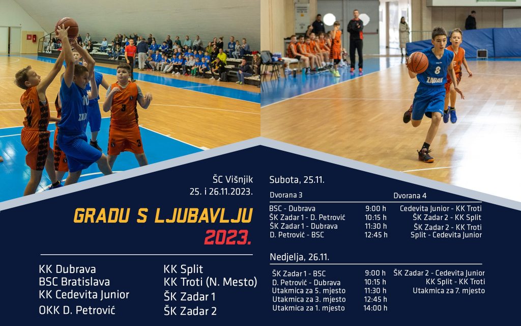 U organizaciji Škole košarke Zadar održat će se ove subote i nedjelje 26. po redu Međunarodni košarkaški turnir za mlađe uzraste „Gradu s ljubavlju”. Poklon je to škole svom gradu za njegov rođendan, blagdan Svetog Krševana.
