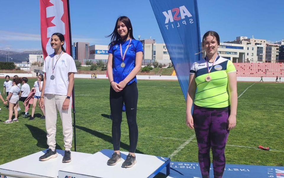 U Splitu su mladi atletičari briljirali na Uskrsnom mitingu Memorijal Joško Kapetanović, osvojivši tri medalje uz tri osobna rekorda. Dora Pešić bila je najbolja u utrci na 60 metara (2018. godište) s vremenom 10.77. Mlađa kadetkinja Tonina Šarić (2014.) osvojila je srebro u bacanju kugle (2 kg) s hicem 10.25 metara, dok je kadetkinja Patricia Pešić (2011.) osvojila broncu u bacanju koplja (500 g) s rezultatom 25.70 metara.