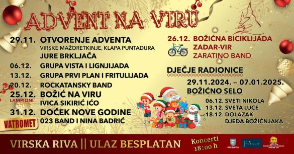ADVENT NA VIRU Ove subote koncert Rockatansky Banda, a na Stipanje božićna biciklijada Zadar – Vir